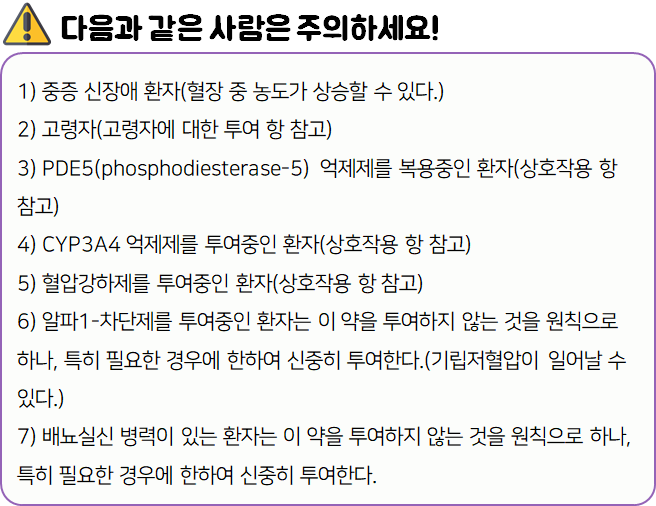 - 다음 환자는 복용 전 전문가 or 의사와 상담 후 복용하시기 바랍니다.