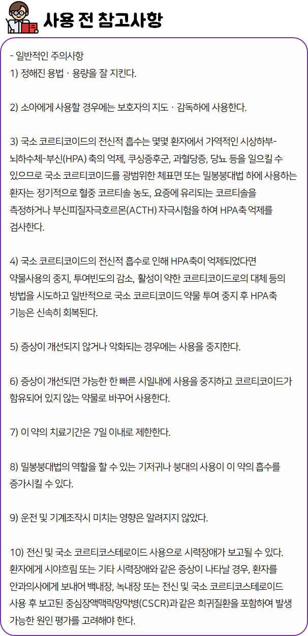 혹시라도 사용 중 부작용이나 각종 이상 반응이 나타나게 되면 즉시 사용을 멈추고, 전문가 혹은 의사와 상담하세요!