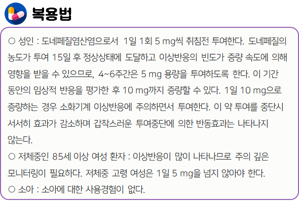 이 의약품은 기억 및 인지 능력을 향상시켜 알츠하이머형 치매 증상을 완화시켜 주는 약이니 참고하시길 바랍니다.