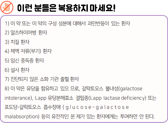 - 다음 환자는 복용 시 위험할 수 있으므로 복용하지 마시길 바랍니다.
