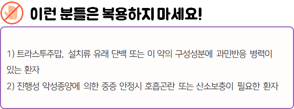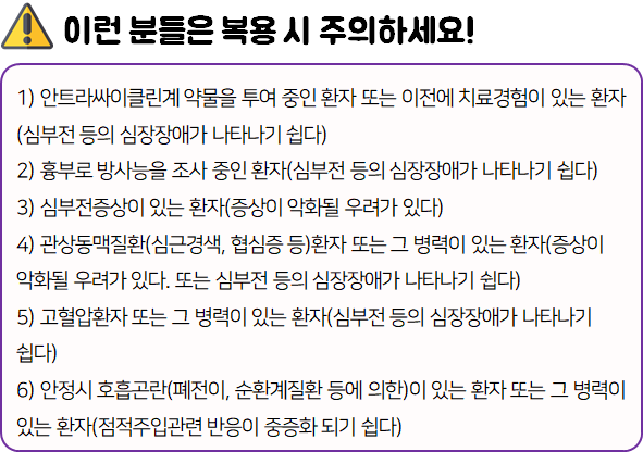 - 다음 환자는 사용 전 전문가 or 의사와 상담 후 사용하시길 바랍니다.