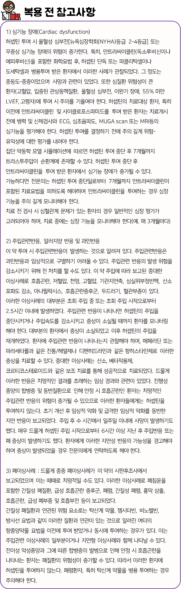 허셉틴 사용 시 주의해야 할 사항