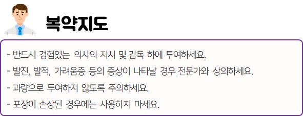 * 이 의약품은 복용하는 것이 아니라 주사이니 복용법 → 투여법으로 바꿔서 이해하시기 바랍니다