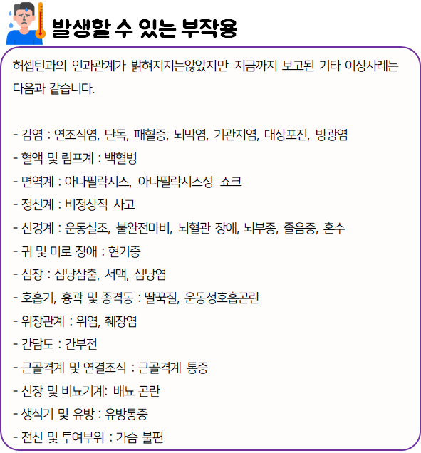 허셉틴을(를) 투여할 시 다음과 같은 부작용이 발생할 수 있으니 주의하시길 바랍니다.