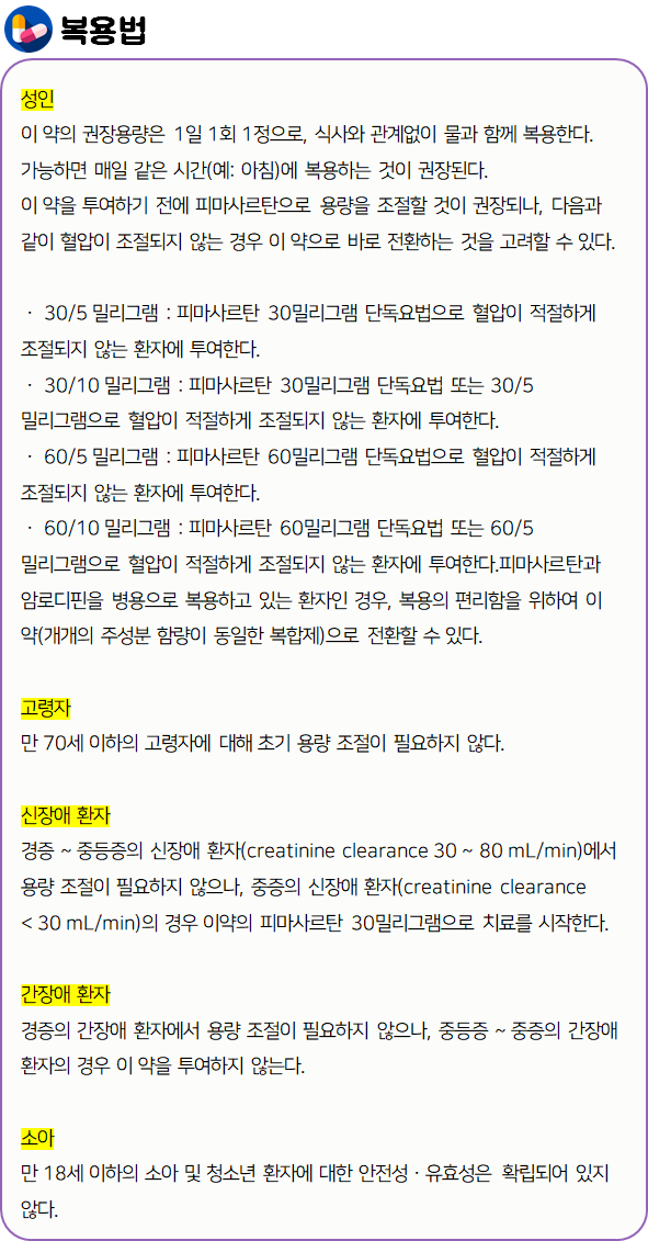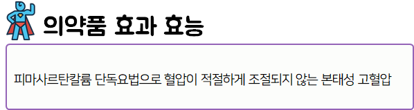 이 의약품은 '혈관확장작용으로 혈압을 낮추고, 심장 부담을 감소시키며 심장에 산소공급을 늘려주는 약입니다'이니 참고하시길 바랍니다.