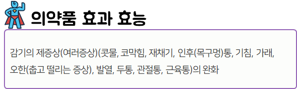 이 의약품은 오한, 발열, 콧물, 코막힘 등의 감기 증상을 개선하는 종합감기약이니 참고하시길 바랍니다.