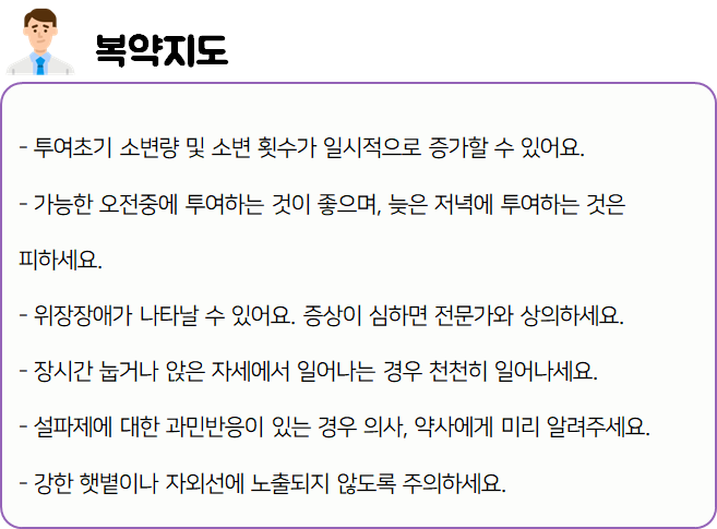 이 글은 의약품의 효과·효능부터 복용법, 부작용, 복용 시 주의사항, 복약지도에 관한 모든 정보를 담고 있으니 끝까지 읽어보시고 안전하게 복용하시기 바랍니다.