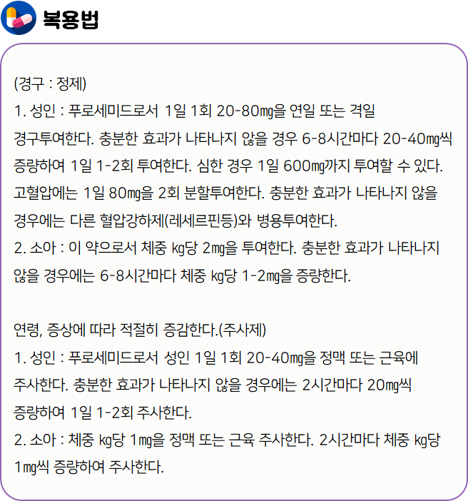 : Furosemide : 순환기계질환 > 이뇨제 > Loop계