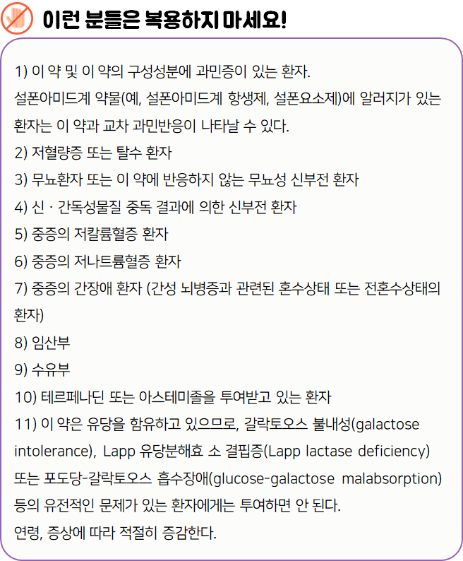 - 다음과 같은 사람은 복용 시 위험할 수 있으므로 복용하지 마시길 바랍니다.