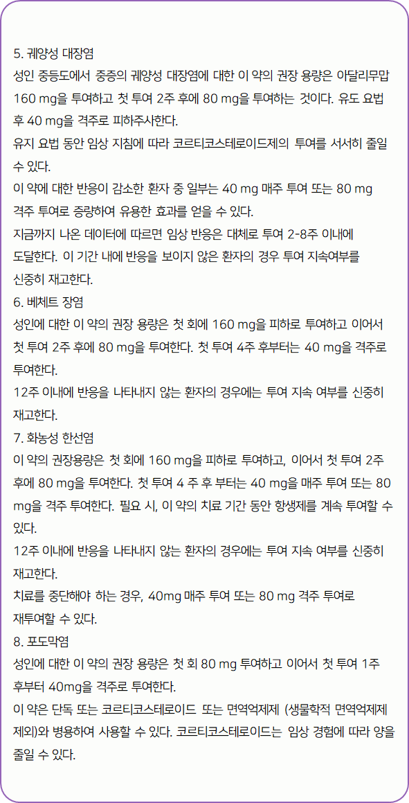 : Adalimumab : 암 및 면역 관련 질환 > 면역조절제제 > 면역억제제 > TNF-α 억제제