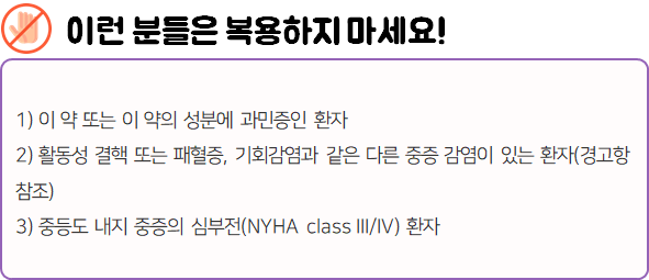 - 다음 환자는 투여 시 위험할 수 있으므로 투여하지 마시길 바랍니다.