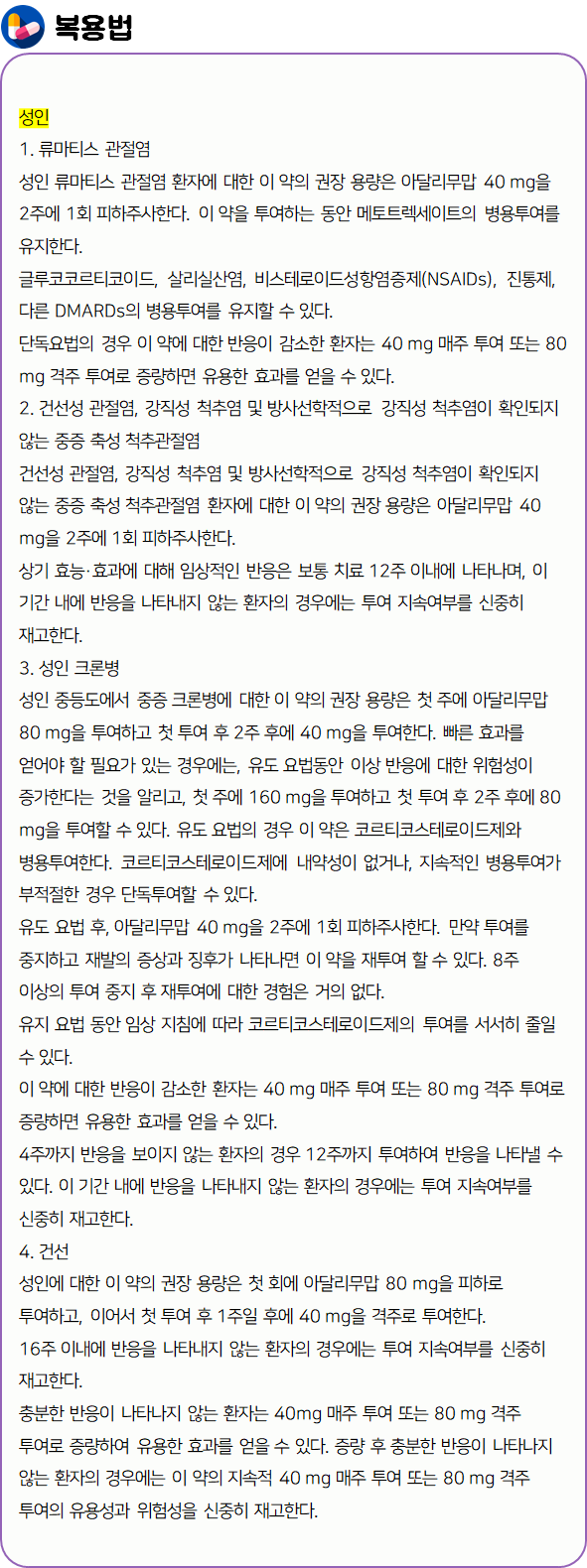 이 글은 휴미라에 대한 효과·효능부터 복용법, 부작용, 복용 시 주의사항에 대한 모든 정보를 포함하고 있으니 끝까지 꼼꼼하게 읽으셔서 안전하게 복용하는데 도움받으시길 바랍니다.