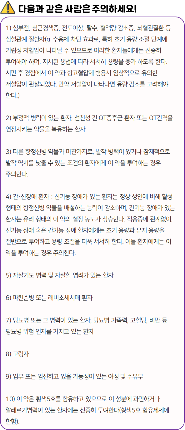 - 다음 환자는 복용 전 전문가 or 의사와 상담 후 복용하시기 바랍니다.